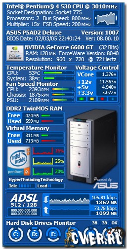 Samurize - программа, служащая для мониторинга разнообразных системных ресурсов под операционными системами Windows и отображения собранной статистики прямо на рабочем столе. Программа обладает гибкими настройками, удобным редактором и практически не загружает процессор. Есть мониторинг сетевых соединений, памяти, дисков, запущенных программ, загруженности процессора и т.д. Присутствует поддержка пользовательских скриптов.