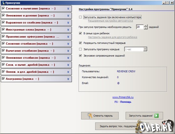 Примерчик - программа, которая будет вместо вас задавать вашему ребенку примеры на сложение и вычитание, помогать в запоминании таблицы умножения и иностранных слов, проверять знания при правописании им русских орфограмм, обучит его выполнять сложение, вычитание и умножение "столбиком".