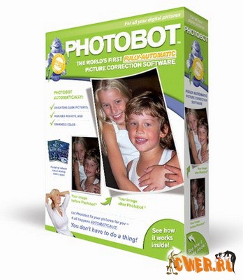 Первая в мире фоторобот-лаборатория полный автомат для "абсолютных" лентяев. Photobot заставляет все ваши картины выглядеть удивительными, и делает он все это автоматически на заднем плане, вы не должны при этом делать ровным счетом ничего, -ну, абсолютный НОЛЬ движений! Photobot, расположившись в трее и работая в фоновом режиме просканирует систему на наличие на ней картинок и автоматически исправит изображения полученные с цифровой фотокамеры, сканера или мобильного телефона в популярном формате JPG. С фирменной технологией Athentech’s Perfectly Clear™ - исправит яркость, с Tribeca Lab’s Full Spectrum RGB™ - исправит цвета на более живые и с FotoNation’s® Red-Eye™ удалит с них "эффект красных глаз".