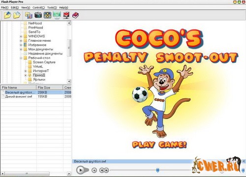 Плеер, предназначенный для просмотра swf-файлов. В комплекте конвертер sfw/exe, захват кадра, создание обоев, создание скринсейвера (экранной заставки), граббер flash со страниц интернета. Полоса прокрутки в виде полоски, поддержка WinXP-тем, асоциация swf-файлов с программой, stop-play по нажатии на выбранную кнопку в настройках, очень дружественный интерфейс.