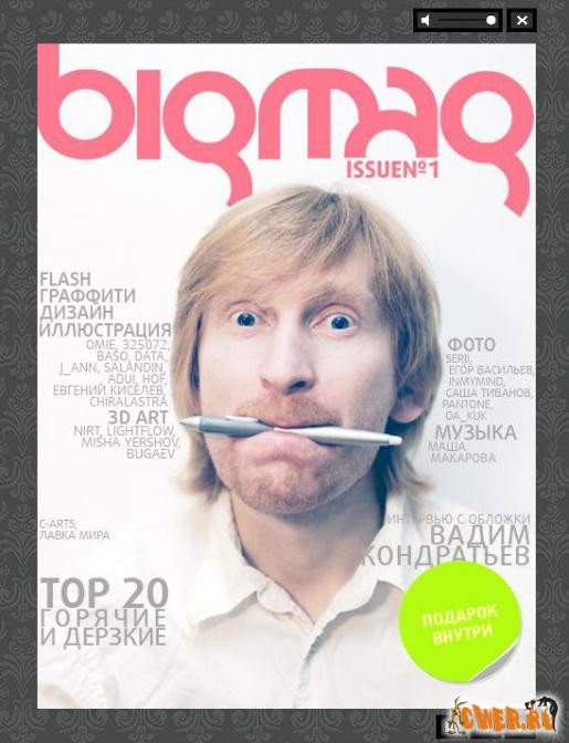Первые два издания (пилотное и №1) журнала BIGmag. В программе - 20ка лучших дизайн студий России, интервью с ведущими дизайнерами и пр.500 страниц, 100 из которых посвящены самым горячим и дерзким web и design-проектам Рунета. Вадим Кондратьев на обложке и интервью легендарной Маши Макаровой с эксклюзивными фото, сделанными у неё дома в Москве.