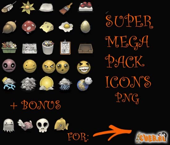 94 Прекрасные иконки [PNG 128*128] разделенные на 5 тем: Emotes, Foods, Office Things, Things, Weda + еще 30 иконок на различную тематику.