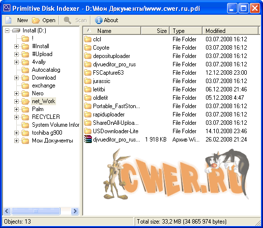 Программа позволит Вам сохранить файловую структуру любого диска. Это позволит просматривать, какие папки и файлы есть на диске, даже если у Вас уже нет этого диска. Например, если у Вас большие CD и DVD коллекции, Вы сможете в любой момент просмотреть, какие файлы есть на любом диске, даже не приходится искать диск и вставить его в дисковод. Программа также будет полезна для интернет-магазина, можно опубликовать отдельный файл для каждого CD или DVD на ваш сайт и Ваш клиент сможет просмотреть, какие файлы есть на этом диске. Поддерживаются: дискеты, CD, DVD, жесткие диски, USB диски и другие.