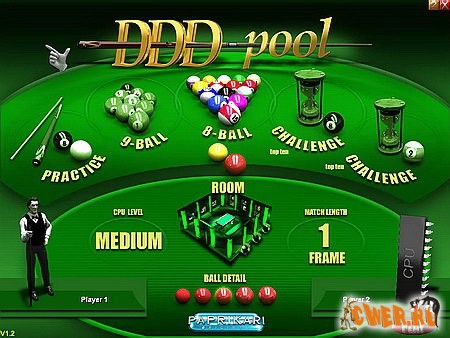 DDD Pool – это игра в бильярд, в которой современнейшая трехмерная графика, реалистичная физика и плавный процесс игры гарантируют вам долгие часы приятного времяпровождения. Попрактикуйтесь в режиме обучения, затем сыграйте в восьми - или девятишаровый пул против своих друзей или компьютерного игрока – или сыграйте на время в любом из двух усложненных режимов и попадите в таблицу лучших. Вы можете выбрать одну из трех детально прорисованных комнат для игры.