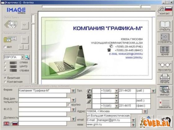 Все, что Вам нужно для работы с ней – это IBM PC совместимый компьютер и любой лазерный принтер с прямой протяжкой бумаги или струйник. Работа с программой чрезвычайно проста и не составит труда даже для неопытного пользователя, однако генерирует профессиональный дизайн. Вы можете легко разместить на карточке свою фотографию, логотип или эмблему своей компании.