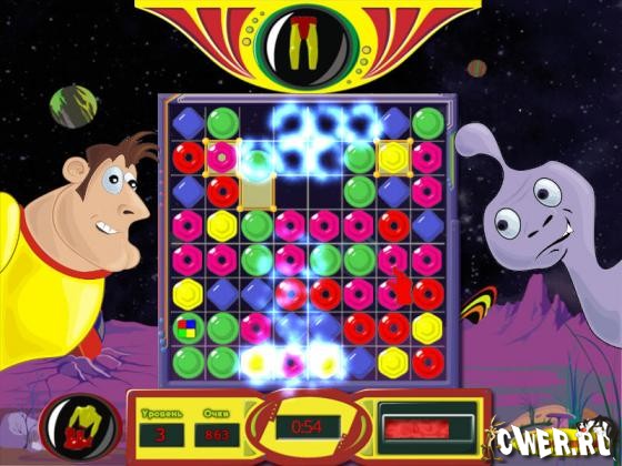 Капитан Отто – игра про крутого супергероя. Составляй цепочки из трех и более фишек, освобождая космические блоки, находящиеся под ними, за ограниченное время. Помоги храброму капитану обыграть пришельцев и спасти девушку.
