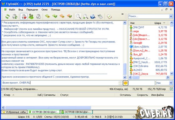 FlylinkDC++ является одной из лучших модификаций DC++. Прекрасный Клиент для работы в файлообменных P2P сетях. Базируется на исходном коде ApexDC++ 0.4.0 и оптимизирован для работы в ADSL и LAN сетях.
