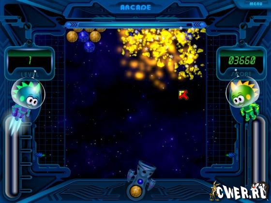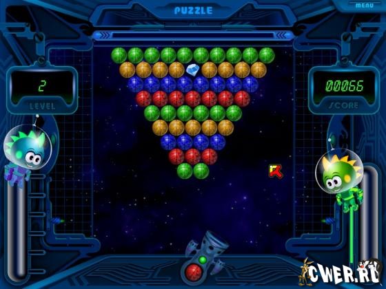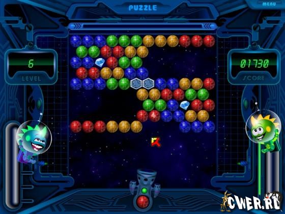 Сверху вниз сползают цветные шарики. Твоя задача – успеть очистить игровое поле при помощи специальной пушки до того, как шарики заполнят собой все. Чем быстрее ты их уничтожишь в игре, тем больше очков получишь. Не смотря на простоту, игра пазлы требует концентрации внимания и усилий. Помни – с каждым уровнем скорость, с которой опускаются шары, возрастает.