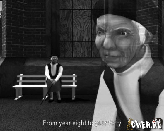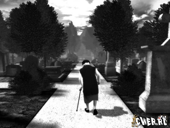 Игра - чувство, игра - переживание. Ваша задача, довести старушку до скамейки на кладбище. Единственным препятствием будет её собственная старость и прямая, узкая тропинка метров 100 длиной. Когда старушка доковыляет до скамейки и усядется на неё, она начнет вспоминать всех родственников и друзей, которых похоронила. Это будет происходить под звуки загробной музыки, в то время как камера во всех деталях будет показывать её морщинистое лицо.