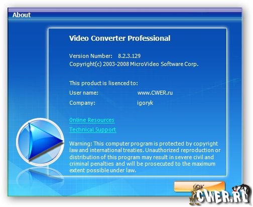 Скачать программу Microvideosoft Video Converter Professional v8.2.3.129 (32,52 МБ):
