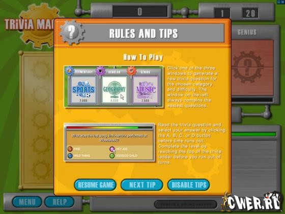 Взбирайтесь по лестнице знаний, отвечая на интересные вопросы в игре! Эта игра предлагает вам тысячи разнообразнейших вопросов в девяти категориях.