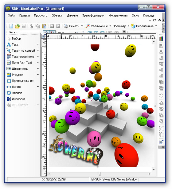 Программа просто супер! Особенно для работы. Чем сидеть и карячиться весь день в Ворде рисовать этикетки, здесь это можно сделать за 5 минут. Кстати работает со всеми типали принтеров от матричного и кончая термопринтерами.
