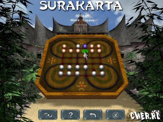 Традиционная настольная игра жителей острова Ява. Игровое поле игры имеет шесть горизонтальных и шесть вертикальных линий. Суставы из четырех внешних баров связаны круговыми линиями. Два противника, которые принимают участие в игре сидят друг напротив друга. Каждый из них имеет по 12 шаров, расположеных определенным образом.