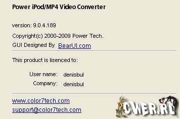Скачать программу Power iPod/MP4 Video Converter 9.0.4.189 (27,3 МБ):