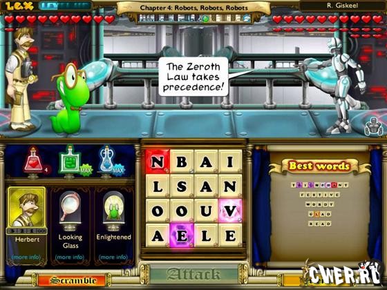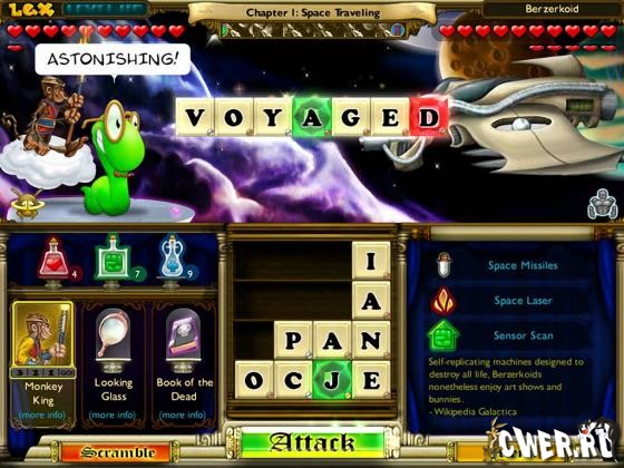 Помогите Лексу в приключении во времени. Постройте слова и боритесь против 50 мутантов и роботов, чтобы спасти великую библиотеку от гибели!
