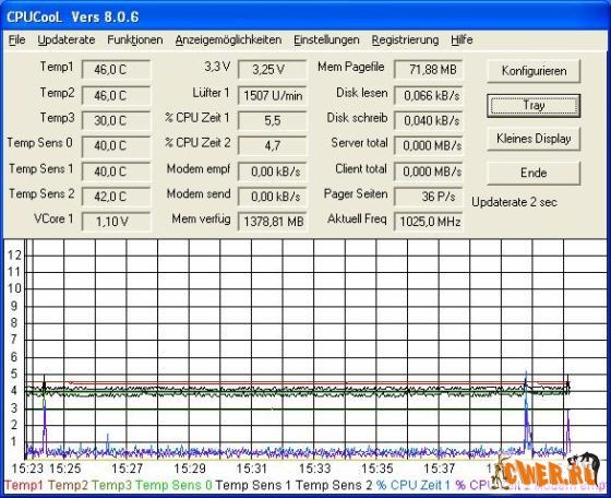 CPUCool поможет вам уменьшить температуру процессора; кроме этого, позволит оптимизировать работу CPU (AMD, Cyrix, Intel), выводит данные об основных параметрах материнской платы (температуру, скорость вращения вентиляторов, напряжения) и температуре жесткого диска. В общем отлично годится для разгона процессора (CPU).