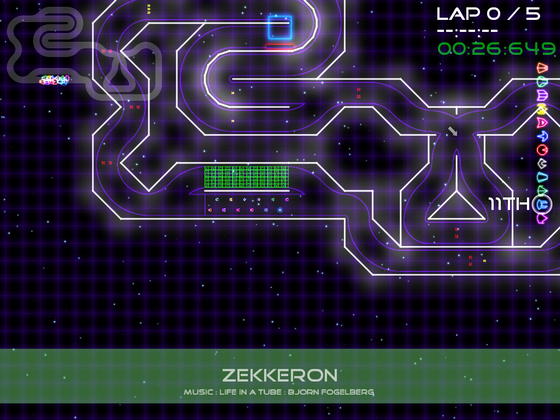 Сумасшедшие гоночные состязания в лазерном оформлении! 3 режима, 12 треков, 12 кораблей, 6 видов оружия и встроенный редактор!