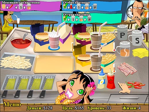 Блюда готовятся по тридцати уникальным рецептам с добавлением сорока ингредиентов, да еще надо следить за временем. Ну как тут не запутаться? Только ты сможешь помочь труженице выполнить заказы клиентов в срок, открыть новые составляющие замечательных блюд и в конечном итоге превратить заштатную забегаловку в высококлассное заведение. Да здравствуют кулинарные изыски!