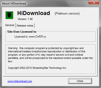Скачать программу HiDownload Platinum 7.86 (3,96 МБ):