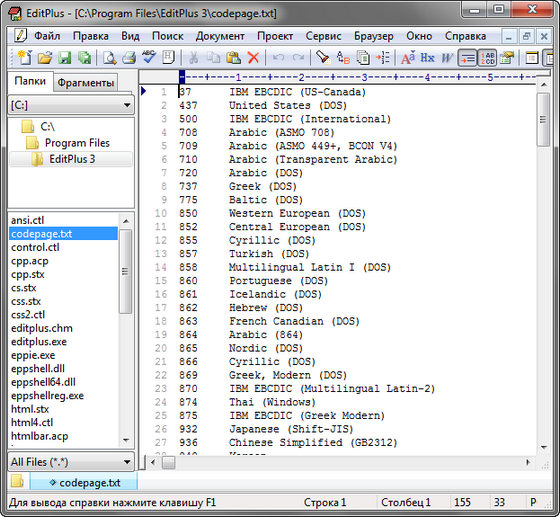 - В отличие от блокнота Windows, EditPlus может оперировать с очень большими текстовыми файлами. Размер файла ограничен только количеством свободной оперативной памяти