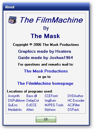 The FilmMachine - это все необходимое для конвертирования файлов формата AVI в DVD / (S)VCD. Поддерживает титры DVD. Для работы программы также требуется видео кодер CinemaCraft Encoder SP, Canopus Procoder, HC Encoder или QuEnc.