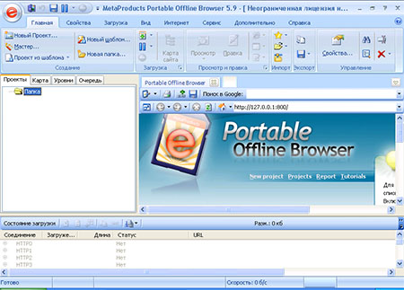 Portable Offline Browser - программа представляет собой оффлайновый браузер, способный инсталлироваться и запускаться на съёмном диске (например, флэш-накопителе) и работать в рамках любой версии Windows, не требуя дополнительных настроек. При выключении компьютера все ваши файлы и проекты останутся только на съёмном диске и - нигде более. Благодаря данной программе вы сможете продолжать работать с нужными сайтами даже когда доступ в интернет приходится прервать.