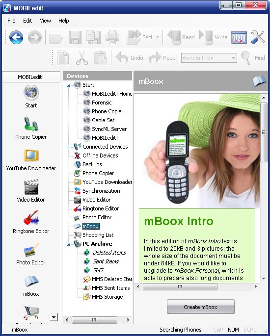 MOBILedit! - уникальная модульная программа, которая позволяет Вам управлять вашим мобильным телефоном с персонального компьютера через Bluetooth, ИК-порт или кабель. Вы можете легко скопировать фотографии с телефона или загрузить в него ваши любимые мелодии, логотипы, MP3, а также просматривать историю звонков и SMS сообщений. Вы можете набирать номер, отправлять SMS (русский, к сожалению, не поддерживается), принимать телефонные вызовы, редактировать список контактов и играть в игры ...
