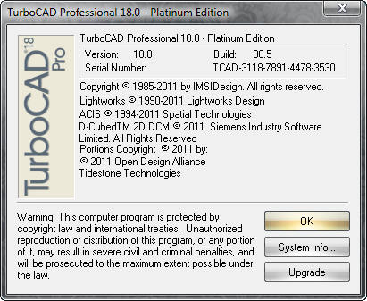 TurboCAD Pro Platinum - максимальное решение для профессионального CAD проектирования опытным дизайнерам и проектировщикам. Построенная на объединенном 2D черчении и 3D проектировании поверхностей, а также наборе инструментов TurboCAD Pro, данная версия включает в себя большое количество дополнительных технологий - ACIS технология твёрдотельного моделирования, D-Cubed технология и Lightworks технология реалистичного рендеринга.