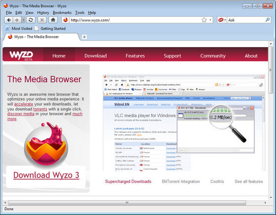 Новый движок браузера: Wyzo построен на основе технологии Mozilla. Быстрый, с большим набором функций, безопасный и надежный - поможет вам без проблем реализовать весь потенциал Интернета!