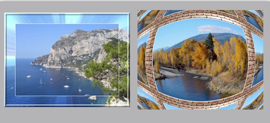Программа позволяет использовать более 50-ти эффектов, включая как традиционные, так и оригинальные. Вы сможете увидеть свои фотографии на фоне дождя и снега, в тумане и под облаками, добавить солнечный свет или закружить в потоке тайфуна... Эффекты можно комбинировать для создания действительно фантастических композиций. Выбранные фильтры применяются как ко всему изображению, так и к отдельным его частям, выделяя наиболее важный фрагмент фотографии. Мастер Эффектов поможет украсить домашний фотоальбом, веб-сайт и даже позволит создать оригинальную открытку. Мастер Эффектов делает возможным не только обработку, но и оформление фотографий. В его арсенале содержится более 100 рамок и масок, которые украсят портреты, пейзажи и даже простые сюжетные снимки. Важно, что эффекты можно применять как до, так и после оформления фотографии. Сочетание эффектов и обрамления - одна из самых главных функций программы. Например, Вы можете наложить классическую рамку, а затем, при помощи эффектов освещения, добавить реалистичный солнечный свет по её контуру.