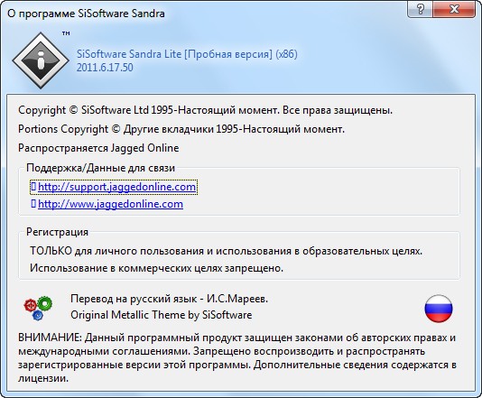 Скачать программу SiSoftware Sandra Lite 2011.6 v17.50 (53,37 МБ):