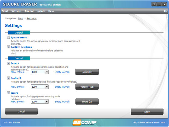 Скачать программу Secure Eraser 4.000 Professional Edition (7,71 МБ):
