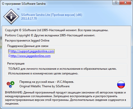 Скачать программу SiSoftware Sandra Lite 2011.8 v17.70 (54,6 МБ):