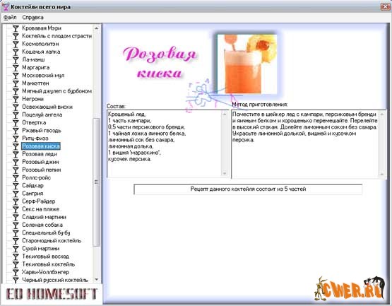 Маленькая программа в которой собраны рецепты коктейлей, легко приготовляемых в домашних условиях