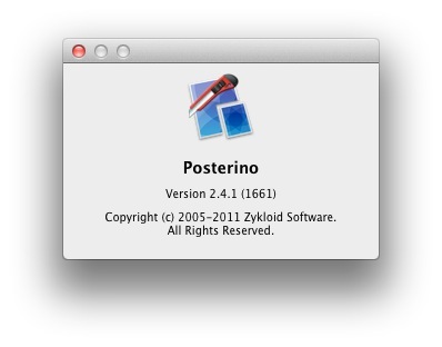 Posterino – программа, ориентированная на создание различных постеров и открыток. Включает в себя достаточно много разных шаблонов, касательно расположения изображений на постере. Среди них такие знаменитые, как 365 Days, Landscape, Classic, Clasters и многие другие. Шаблоны можно редактировать, получая произвольные результаты постеров. Из дополнительных возможностей программы стоит отметить поддержку iPhoto Media Library, широкие возможности по выбору шрифтов, и функцию отправки готового постера или открытки по email.