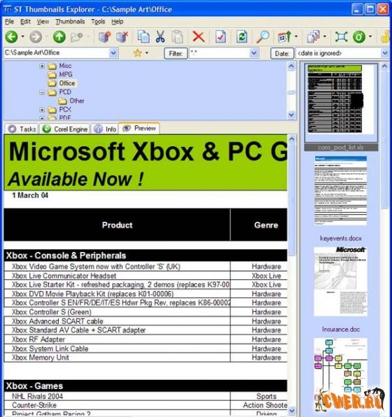 Уникальный и практически единственный в своем роде, скоростной и не требовательный к системным ресурсам просмотрщик эскизов картинок ("превьюшек" / thumbnails) с полным набором функций файл-менеджера для управления любыми графическими файлами и снабженный интерфейсом в стиле проводника.