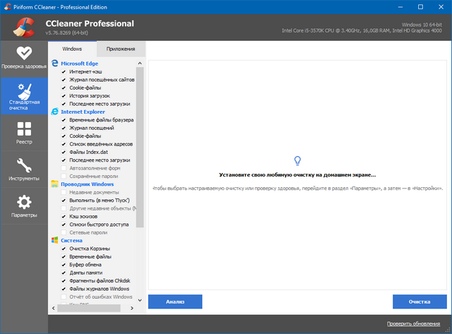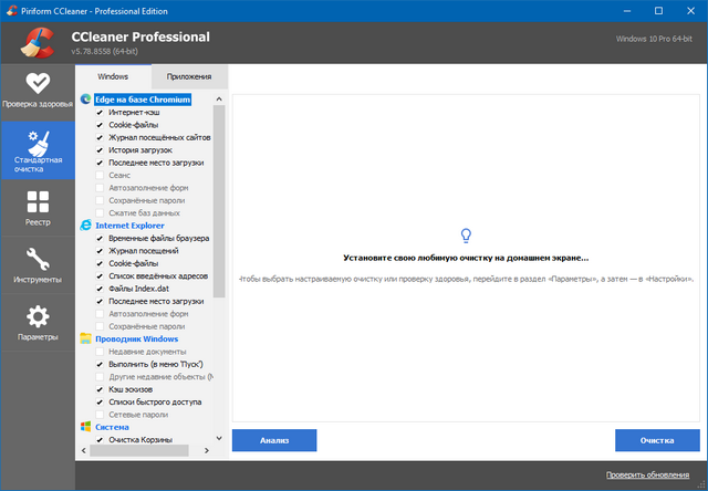 CCleaner - приложение для оптимизации системы и обеспечения безопасности пользователя. Удаляет неиспользуемые и временные файлы, делая работу Windows более быстрой и освобождая место на жестких дисках.
