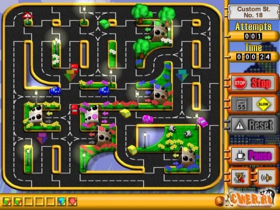 В этой игре Вы управляете дорожным движением. Расставьте стрелки на дороге так, чтобы машинки приехали в нужный пункт назначения.