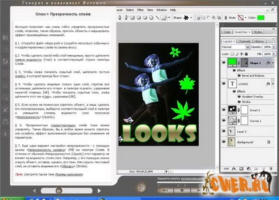 Каждый урок сопровождается в ней флэш-роликом, что позволяет любителям видео при просмотре иногда поглядывать в текст, а книголюбам сверяться при чтении с видео-иллюстрацией. Схватываете всё на лету и хотите выучить Фотошоп за три часа? Разверните ролики во весь экран и смотрите в режиме нон-стоп как один полнометражный фильм.