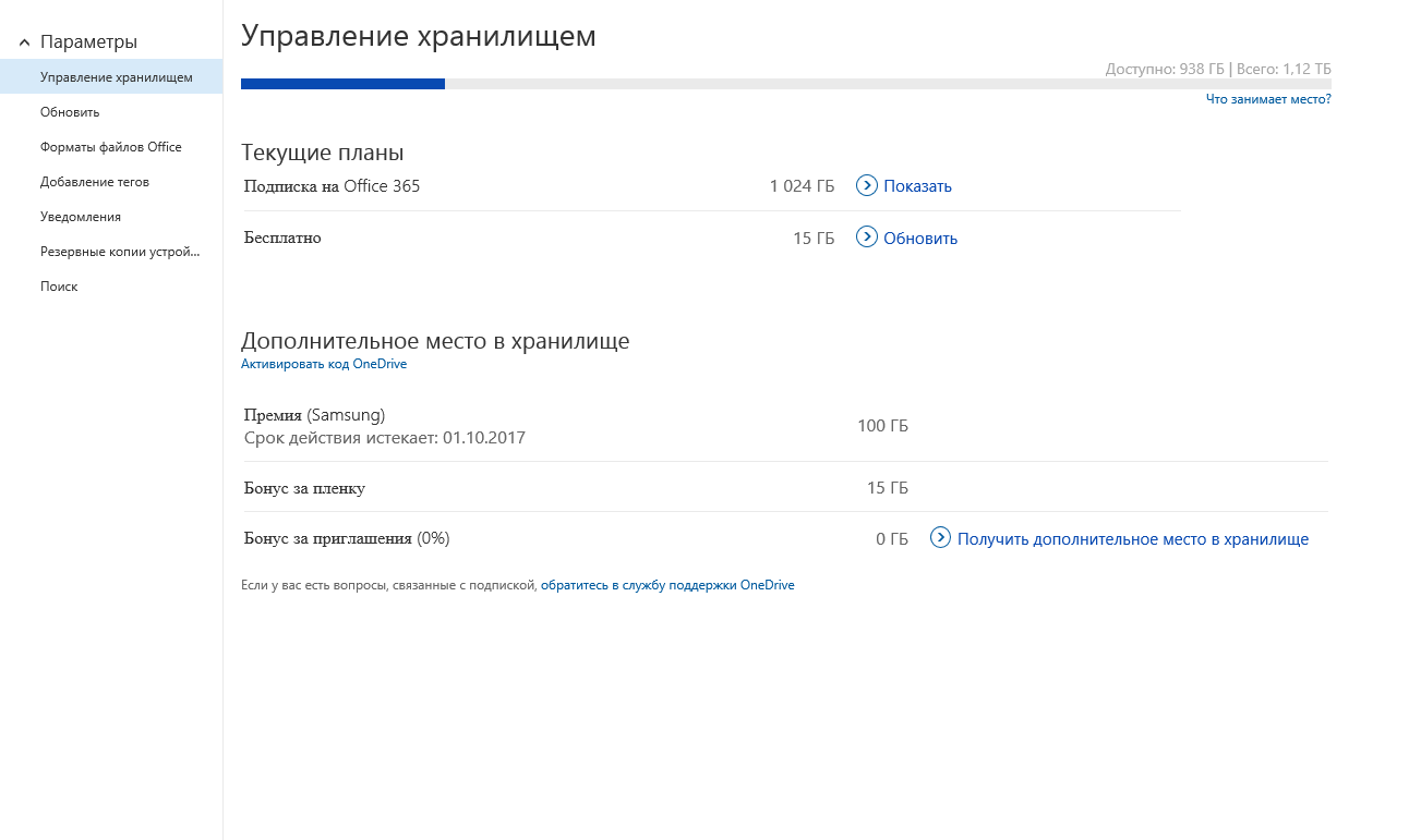 Так с помощью небольших хитростей мы получили 115GB в Onedrive.