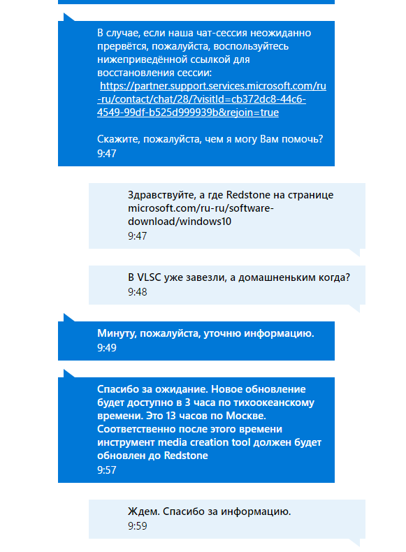 Через три часа выйдет релиз на Techbench и для MediaCreationTool (Answer Tech).