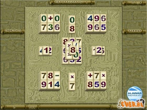 В первом из них вы сможете по своему усмотрению перемешивать фишки на игровом поле и увеличивать таким образом количество возможных ходов. В режиме Цифры изображения на фишках представляют собой числа и математические знаки. Удаляйте с игрового поля пары одинаковых плиток и старайтесь создавать из них правильные арифметические выражения (например: 16:3=6), за которые начисляются дополнительные очки.