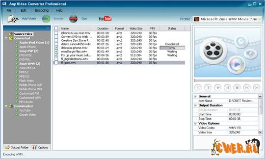 Any Video Converter Free 2.63 - Бесплатный видеоконвертор. Поддерживает преобразование файлов DVD NTSC, DVD PAL, MPEG-I, MPEG-II, MPEG-4 и Flash FLV.