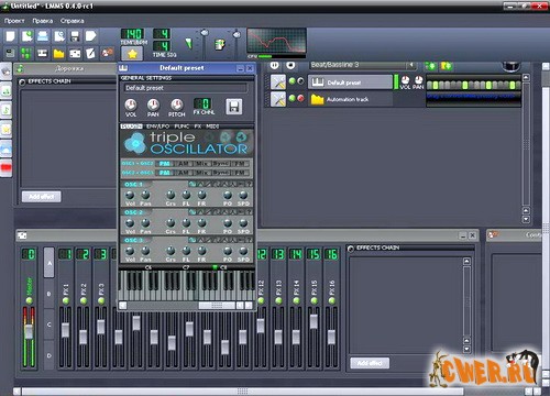 Программа (программный синтезатор) для Windows, альтернатива пакетам вроде проприетарных FruityLoops, Cubase и Logic, предоставляющая возможность написания собственной музыки на компьютере с помощью синтезирования звуков, размещения готовых образцов (сэмплов), наигрывания мелодии на миди-клавиатуре и многого другого… LMMS позволяет управлять шаблонами, лейтмотивами, создавать каналы для различных инструментов, подключать звуковые файлы с сэмплами. Русский язык поддерживается.