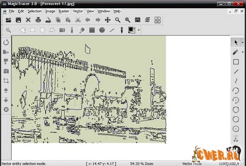 Magic Tracer - работает под Windows , делает заявку на высокую эффективность и уникальную функциональность... Поддерживает все популярные графические форматы, в том числе BMP, GIF, JPG, TIF, TGA, ICO, CUR, PCX.