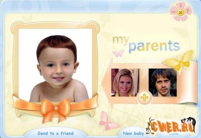 BabyMaker в три шага покажет Вам фото будущего ребенка. Втавляем фото мамы и папы и фото Вашего будущего ребенка готово!!! Есть возможность поэкспериментировать с выбором пары.