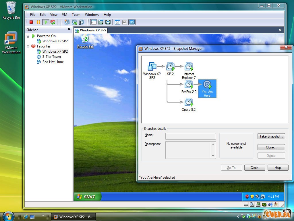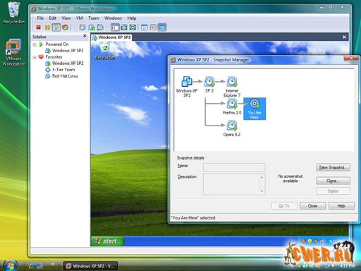 Производитель программ для создания виртуальной среды VMware выпустил новую версию приложения VMware Workstation 6. Это решение, позволяющее реализовывать технологии виртуальных машин на платформе ПК. VMware позволяет, по сути, из одного компьютера получить сразу несколько, причем эти виртуальные компьютеры при необходимости можно полностью изолировать друг от друга, а можно, наоборот, обьединить в виртуальную локальную сеть. Программа поддерживает устройства USB, базовые устройства SCSI и работает с ISO-образами CD-ROM. В программе вы можете использовать операционные системы с любой файловой системой.