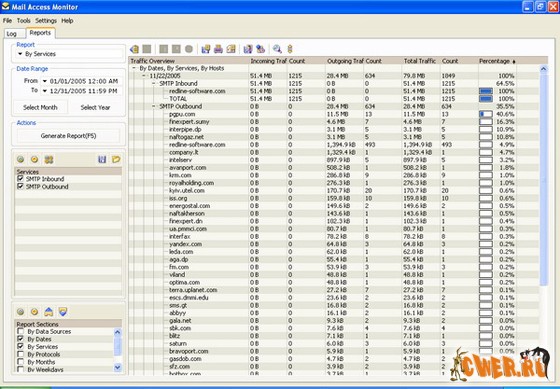 С его помощью Вы легко сможете определить, кто из сотрудников наиболее активно отправляет и получает электронные письма, время отправки и количество этих писем, а также объем генерируемого ими трафика. Mail Access Monitor позволяет централизованно контролировать всех пользователей почтового сервера Вашей организации.