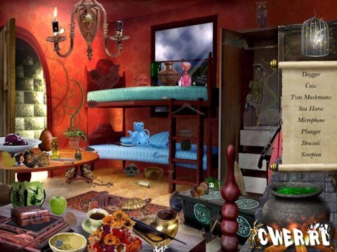 Каждая комната содержит особые испытания для ваших навыков, и помните- чем больше предметов вы найдете, тем быстрее героиня достигнет своей цели. Если у вас возникнут какие-либо трудности, вам помогут феи или призовые раунды. Найдите все предметы, спрятанные в комнатах, и не допустите, чтобы погас костер, на котором стоит волшебный котелок!