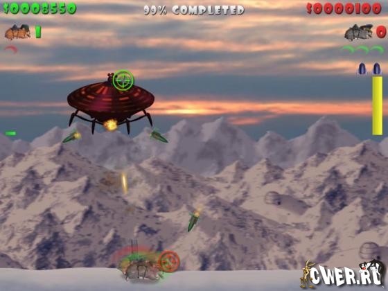 Вы должны провести сержанта Fluffles и его суперсовременное оружие через мясорубку из летающих тарелок, гигантских роботов и владеющих лазерным оружием чудовищ, которым не терпится поджарить его. С помощью удивительного арсенала Вы должны поразить целую армаду гигантов на своем пути к победе!